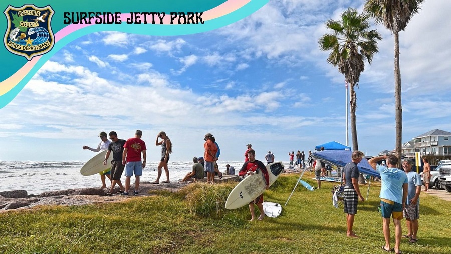 Surfside Jetty Park is a 15-acre day use beach park. Its features include a paved parking area with handy access to the beach, harbor channel and jetty, a playground, and restroom facilities. Natural attractions are fishing, bird watching, wildlife viewing, beachcombing, and shelling. Historically, Jetty Park sits along what was the most important harborage during the time Texas was a republic; the site of historic Fort Velasco is just outside the park. The park area also includes the site of the Velasco Town Battery, dating to before the 1860s. The battery - an emplacement with two brass cannon - was turned over to the Confederacy in 1861. Surfside Jetty County Park is at the foot of the East Jetty off Fort Velasco Drive in Surfside.